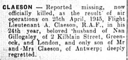 Husband of Nan Gillogaley, 2 Kilblain Street. Born Antwerp