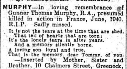 Aged 24 Son of Cornelius Murphy, and of Amelia Murphy, of 10 Chalmers Street, Greenock, Renfrewshire.